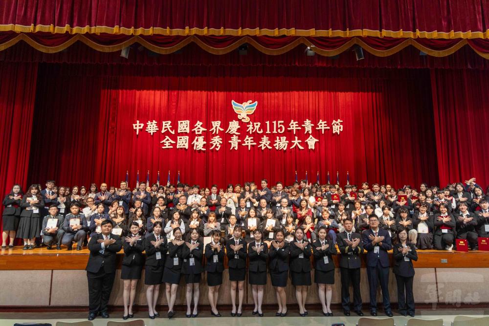 (軍聞社記者莊家豪臺北30日電)115年青年節全國優秀青年表揚大會昨(29)日於劍潭海外青年活動中心舉行,公開表揚青年獎章、社會及大專優秀青年代表共146位得主。其中,國軍桃園總醫院放射腫瘤科主任范兆岳等2位官兵,以及國防大學政治作戰學院政治系劉東昀等6位軍校生,分別獲選社會及大專優秀青年代表,展現國軍人員精進專業、熱心奉獻的優良風範。