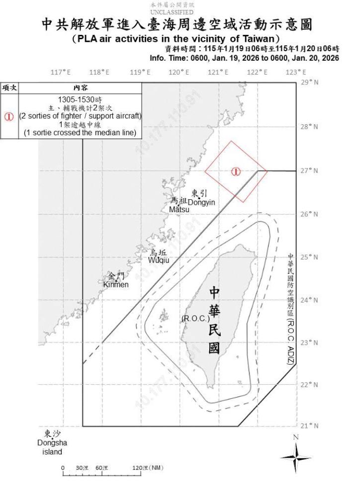 中共解放軍進入臺海周邊空域活動示意圖。(國防部提供) × 中共解放軍進入臺海周邊空域活動示意圖。(國防部提供) 下載浮水印圖 下載原圖 (軍聞社記者陳彥樺臺北20日電)國防部今日表示,至上午6時止,偵獲共機2架次(逾越中線進入北部空域2架次)及共艦6艘,持續在臺海周邊活動。 國防部強調,國軍運用任務機、艦及岸置飛彈系統嚴密監控與應處。 關鍵字 共機 共艦 回上頁 您的瀏覽器似乎不支援JavaScript語法,這裡的JavaScript語法並不會影響到內容的陳述,使用鍵盤快速鍵「ALT鍵+←向左鍵」替代回上頁。