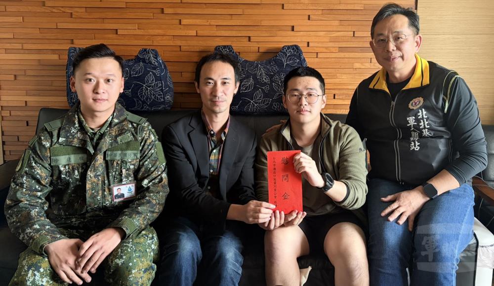 (軍聞社記者尤昱翔臺北22日電)臺北市進出口商業同業公會行政處劉書豪代處長及楊銘祥代組長,今日由臺北市軍人服務站吳遠里站長陪同前往官兵住處,慰問受傷官兵,送上溫暖關懷與實質支持。