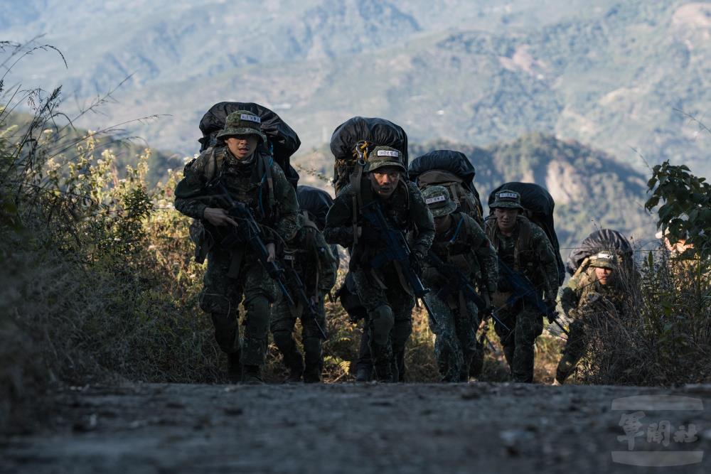 「114-2梯突擊幹部訓練班」期末測驗第5日,學員派遣偵察組進入海拔1540公尺的阿冷山實施現地偵察,研擬機動路線;翌日,全員背負約40公斤的重裝挺進山區,運用地圖、指北針判定方位,在山林間以手勢默契溝通,並保持高度敵情警覺。面對地勢險峻與多變路況,學員在地勢及體能消耗等限制條件下,靈活調整行軍路線及速度,教官亦同步下達敵情威脅與突發狀況處置指令,考驗部隊於山地叢林環境中的戰術運用與臨戰應變能力。(軍聞社李恬恬)